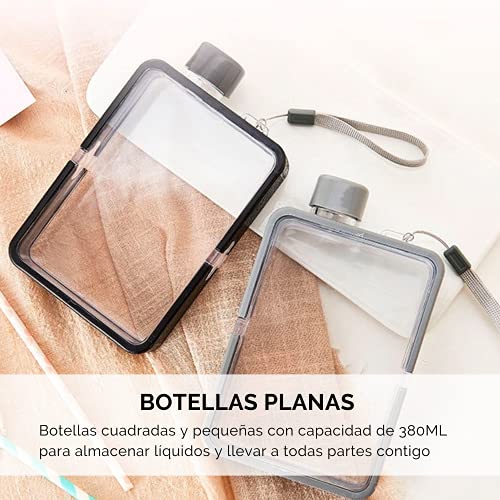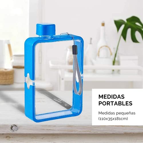 A5-fles: transparante waterfles in A5-formaat met een inhoud van 380 ml. Ideaal voor school, kantoor, sportschool, korte uitstapjes, zonder veel gewicht te dragen